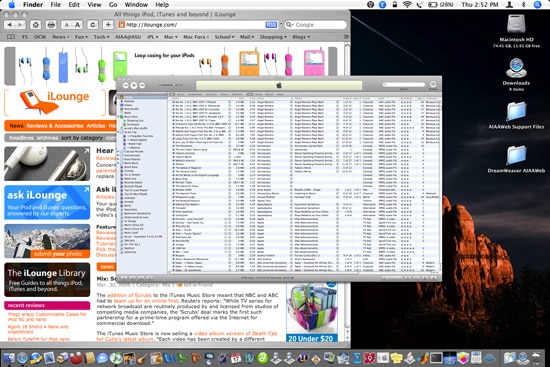 While this 50% scale is impressive and allows much more data to fit on the screen, many would certainly consider it a bit beyond the realm of usability. In our testing, we’ve found that 75% works best for readability and the functionality of all of iTunes’ features, but there are still plenty of bugs: using this trick makes the Mac’s menu bar render awkwardly as you switch from one application to another, and Exposé doesn’t properly understand the scaled window. If you’re comfortable with these compromises, a moderate scale factor adjustment can be helpful.