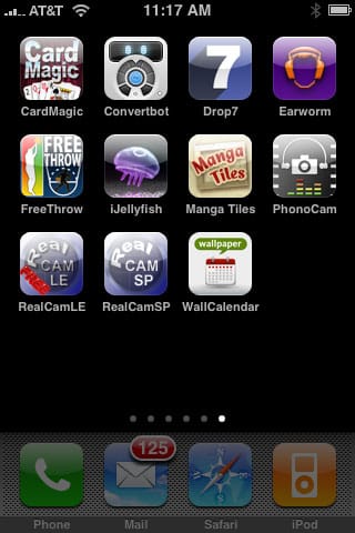 WallCalendar ($1) by Kray is a different story. With a relatively plain interface, it attempts to do something simple and obvious that Apple has heretofore failed to do for the iPhone, namely, to let people transform the device’s splash screen into a view of upcoming calendar events. This, it accomplishes through a relatively simple mechanism: you give it your username and password for Google’s calendar service, tell it how many of the account’s calendars you want to import, and then let it create a photo that sits in your photo library, ready to become your splash screen image without any additional formatting. Turn on your iPhone’s screen and the calendar details will appear directly inbetween the clock and the slide to unlock bar, against a black background. While WallCalendar isn’t fancy, and currently requires you to manually go to your picture library. set the image up yourself as a background image, and then replace it when you need a calendar update, it does what it promises to do. Apple should implement a similar but better feature for professional users, but until it does, this app does a fine job. iLounge Rating: B-.