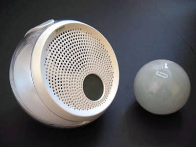 It’s called Music Sphere. To underscore the point for speed readers, this is not Oregon Scientific’s iPod product, hence the lack of iPod-specific functionality – and our placement of it on Backstage instead of the main iLounge site. But the ideas and design cues incorporated within it are pretty interesting nonetheless.