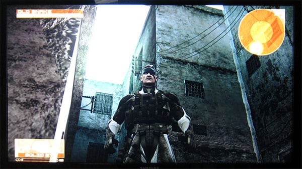 Leaning in the “product placement” category are some of the cutscenes with your assistant, Otacon. He sits at a desk with a suspended Apple Cinema Display floating in the air, and a Mac Pro under the desk—or at least two items that look a lot like them.
