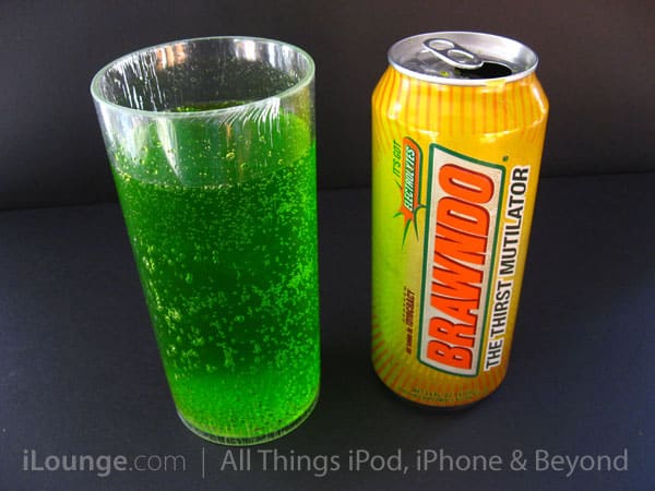 When I heard the news a few weeks ago, I decided I wasn’t going to buy any, lest this licensing deal actually make money for the people at Fox, who deserve nothing after what they did to kill the film. So I was shocked when the UPS truck rolled up today to deliver a case that a friend bought me as a Christmas present (thanks, Christian!), and I’m hoping that Mike Judge might be getting a cut of the merchandising rights for the purchase. Anyway, here’s what it looks like. It tastes like liquid lime-flavored Jell-O.
