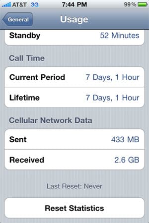 But if you want to ignore that advice and preserve your old settings, make sure you reset the usage meter on the aforementioned Settings > Usage page with the Reset Statistics button. Otherwise, you’ll carry over the call time and data usage from your old phone, and get the shock of your life when you see that your brand new iPhone 4 has supposedly consumed enough data already to destroy your monthly phone plan.