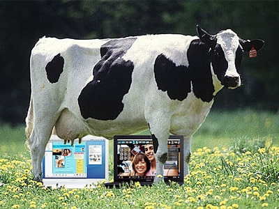 He said it was “totally normal” and that the mooing would in fact be addressed with a forthcoming firmware update. (I believe this as Apple has recently released MacBook Pro firmware updates that “adjust fan behavior”.) He said that basically every MacBook has the potential to moo if they reached the same level of heat/processor load. Also, I can confirm that the Mac OS X 10.4.7 update released late yesterday does not kill the cow. The mooing began minutes after installing the update and restarting the MacBook.