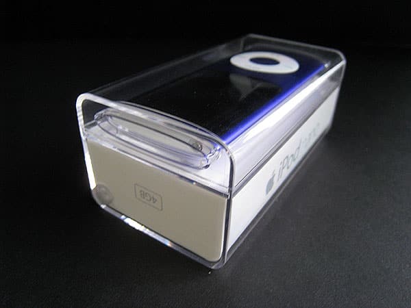 What’s noteworthy about the 4GB unit we received is that the packaging is a little different from the 8GB and 16GB U.S. models. Instead of an Apple logo on the back of the box, there are content descriptions and system requirements in three languages, none English.