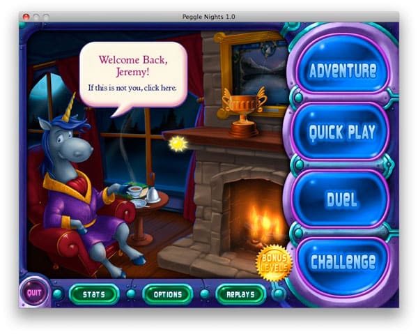 What PC owners received late last year and Mac owners discovered this week is Peggle 2 without the 2, an updated, decidedly 1.5-like version called Peggle Nights ($20). We discussed Nights in a brief update the other day shortly after it became available, and since then, it has occupied the better part of our evenings, found itself recommended to numerous friends and family members, and generally made itself a part of our lives. It is the addictive equivalent of Street Fighter IV for people with no interest in learning special moves or punching martial artists in the face; a game where you can be competitive with others—“how many levels have you completed?”—without actually bloodying their characters or faces.