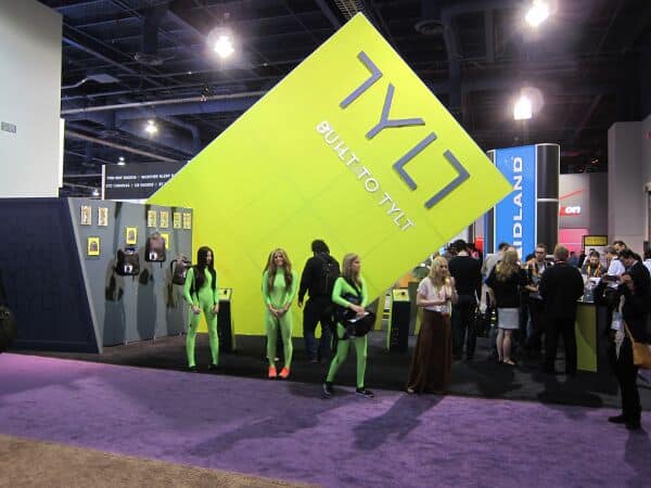 Tylt’s brightly colored, eminently visible booth at CES 2013.