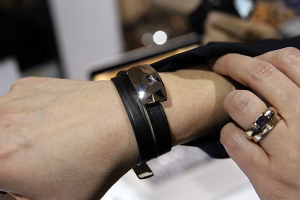 The design of the June bracelet is deliberately akin to fashion jewelry, with a metallic reflective pod held on one’s wrist by a leather bracelet.