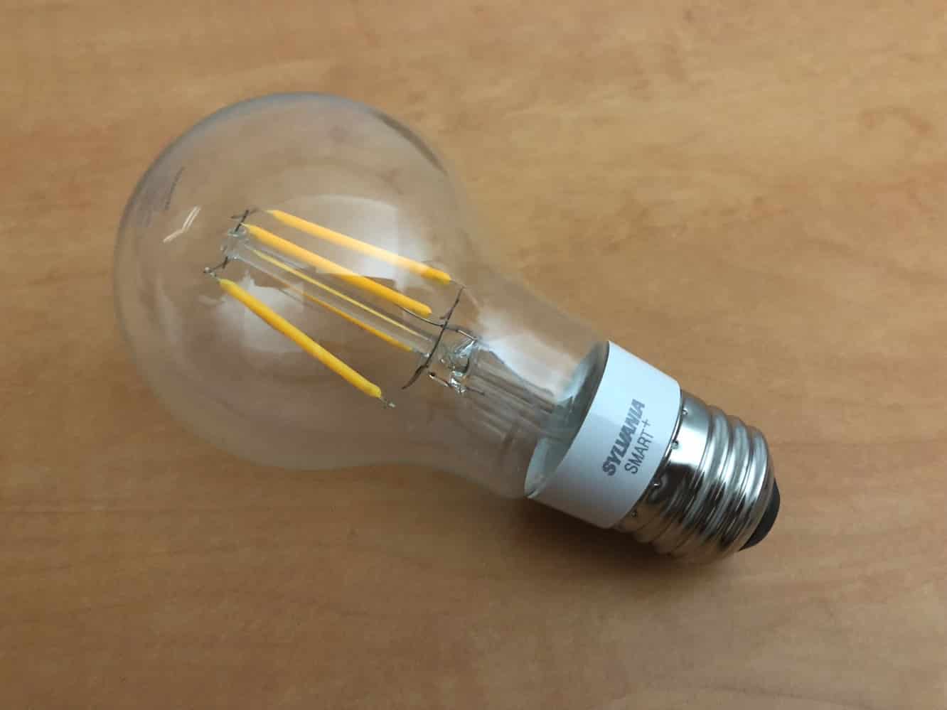 The new A19 filament bulb joins Sylvania’s Smart+ HomeKit lighting lineup that we reviewed last month; it’s a Bluetooth light bulb that you can pair up with your HomeKit system with no additional hardware bridges or hubs required.