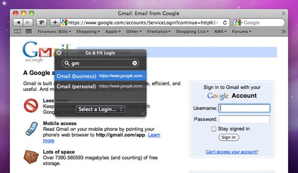 The next time you come to a site, you can simply hit the “1P” button next to the address bar, and 1Password will fill the boxes in for you. Everything inside of 1Password is secured with one master password, so as long as you can remember that, you’re all set. You can also save software licenses and set up a digital wallet of your credit and ID cards, which makes online shopping even easier than it already is. You can also sync your data quickly to iPhone and iPad apps, which let you take everything on the road with you.