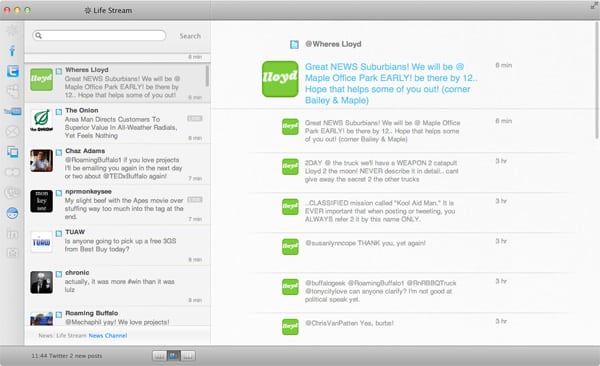 Right now, Life Stream supports most of the biggest social networks: Facebook, Twitter, LinkedIn, Instagram, and Foursquare to name a few. The developer is open to adding more networks and features based on what its users want. There are audio notifications for new messages, and Growl support is built-in as well.