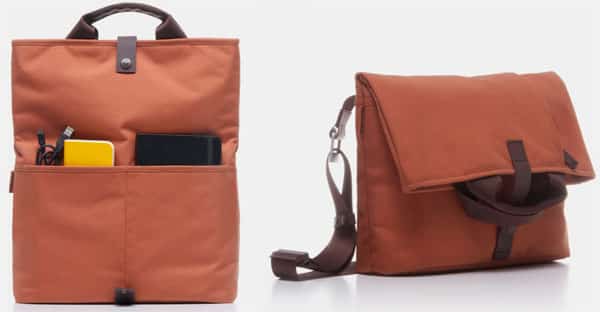 Capable of holding a 13” MacBook in one orientation or a 15” MacBook Pro in another, it flips and folds, making it two bags in one.