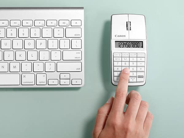 This multi-function device combines a three-button, laser-tracking mouse with a physical calculator—complete with it’s own screen—that can also double as a numeric Bluetooth 2.0 keypad, giving users of Apple’s laptops or Wireless Keyboards back the number pad they’ve been missing. It also features an integrated low power indicator, and will come in black or white.