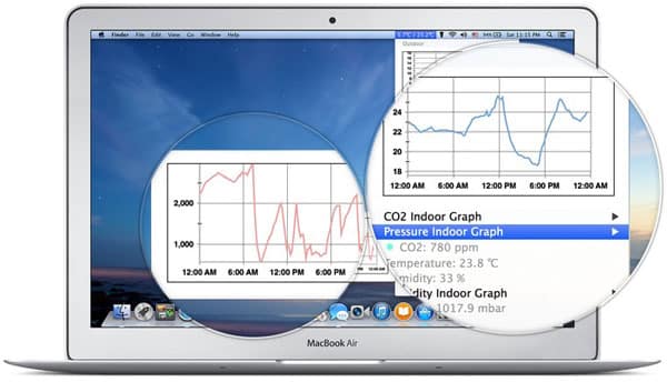 Download the app, and it’ll give you information such as temperature and humidity—both outdoor and indoor—plus altitude, indoor CO2 levels, indoor pressure, and sound level. It’ll also display daily graphs of that information, so you can track it over time.