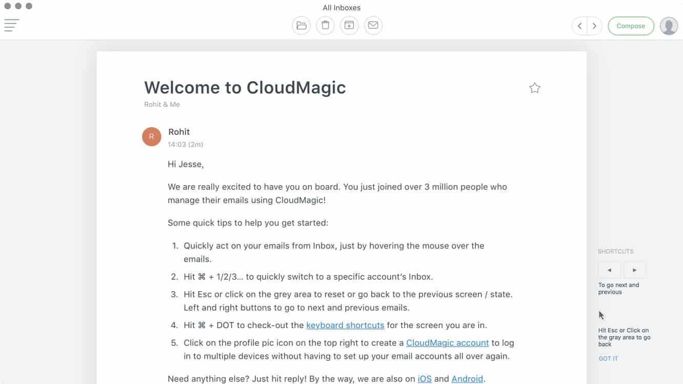 Originally debuting on the iPhone and iPad two years ago, CloudMagic has gained a following for its clean and minimalist approach to managing email, focusing on simplicity and aesthetics. After eight months of development, CloudMagic Email ($20) has now arrived for Mac users.