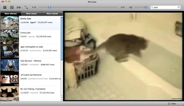 It feels great to hit the Genius button in iTunes and get a perfect playlist. Now imagine if you could do the same thing with YouTube videos—start on one cute cat video and wind up with an endless stream of paws and whiskers just waiting to eat your day away. That’s exactly what you’ll get with Minitube ($10) from developer Flavio Tordini.