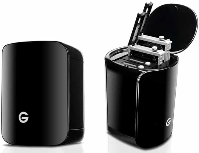 G-Technology takes design inspirations from Apple’s professional Mac models. For the longest time, the company’s hard drives were encased in perforated metal, resembling the old Power Mac G5 and Mac Pro towers. Now, G-Speed Studio ($2,200-$3,600) has a shiny, black plastic shell, much like the current Mac Pro.