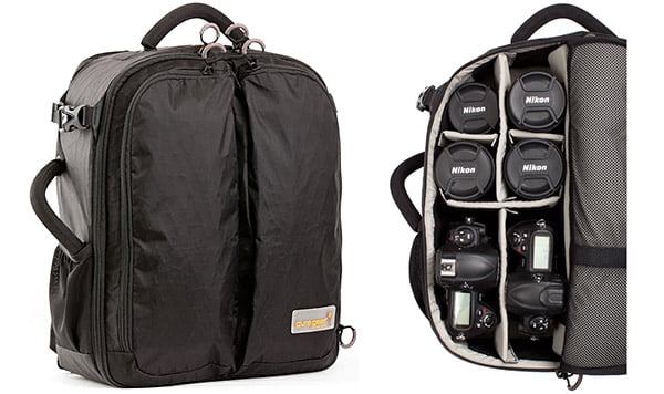 Inside, it has a padded compartment that will hold up to a 17-inch MacBook Pro, as well as multiple bodies, lenses, and accessories, all in separated compartments. Other features include a beefy harness system with memory foam shoulder straps, a vented, padded back panel, a built-in tripod toting solution, and a unique butterfly access system.