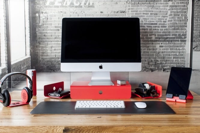 Heckler Design’s Cliff ($75) is a display riser and desk drawer designed to hold a Mac monitor on top while storing its cords and various other office supplies underneath. Made of powdercoated steel, Cliff comes in three separate parts. The larger top piece contains three holes on the front, top, and back.