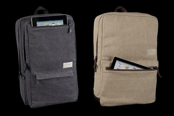 While Hex is probably best known to iLounge readers for its iPod nano watchbands and iPhone-ready wallets, the company’s lineup of Mac-ready backpacks is becoming more impressive all the time. Witness Recon Sonic ($100) and Recon Source ($60), two military surplus-style bags made from charcoal- or khaki-colored heavy canvas material with webbed straps and leather zipper pulls; Sonic is the larger version with an iPad-ready pocket up top, and Source is a little smaller with an iPad-sized pocket on the bottom front.