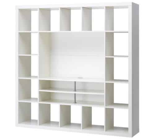 Available in black or Apple-esque white, this modular shelving system has a central box for your TV, surrounded by 16 square shelves and twin rectangular ones right in the center. A number of inserts personalize the unit, including drawers, doors, and the Lekman box, all of which we’ve tried and liked.