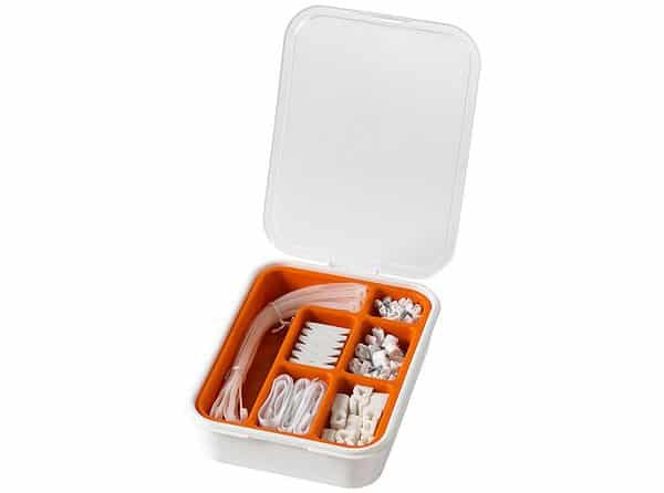 Each box includes three sets of Velcro cable ties, 20 8” ties, 65 cable clips of various thicknesses, and 26 self-adhesive cable tie mounts.