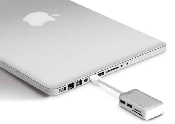 Located at the end of a 3.1” USB cable, this hub provides a few extra ports that’ll be especially handy for MacBook Air users and those who shoot pictures to anything but SD cards. One side has two USB connections for a net gain of one port.