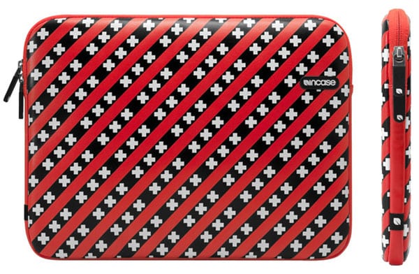 Before you hop on a plane, it’s important to know that the sleeve is pretty much the same as all of the others from Incase, just with a really cool design: there’s a pattern of alternating red and black stripes, with the black bars featuring repeating sets of white St. Andrew’s crosses.