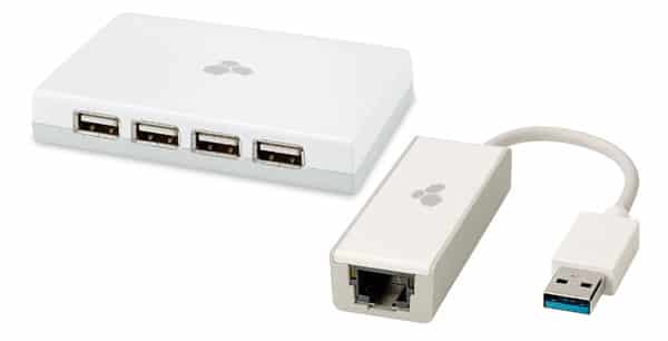 The 4-Port USB 3 Hub is just what it sounds like, adding four ports that support transfer rates of up to five gigabits per second. This makes it a smart choice for those with lots of hard drives or other devices to connect.