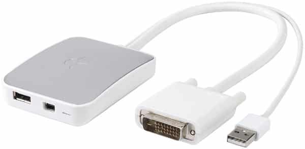 This little white and gray box actively converts the DVI signal to Mini DisplayPort, allowing you to hook right in.