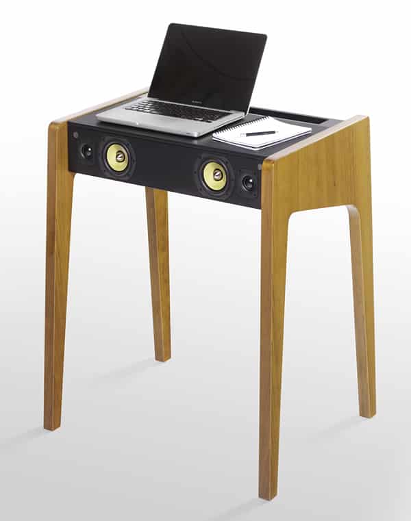 Not content with just giving you a surface to put your laptop on, La Boite Concept has unveiled its LD 130 (€1,480/~$2,054). The “LD” stands for laptop dock, and the “130” denotes the wattage of the speaker—yes, this desk has a built-in speaker system, and a powerful one, too. The desk itself is made out of high quality wood and leather, contributing to the sort of premium look and feel one would expect for the price.