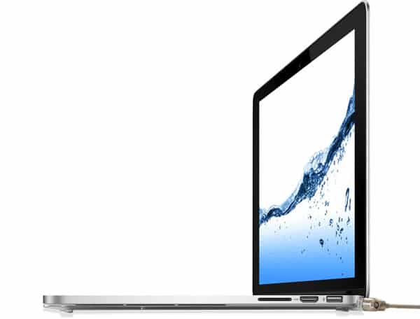 This bundle includes a six foot security cable that snaps into the mount in the back right corner behind the USB port. It may not be the prettiest solution, but Retina Macs are hot commodities right now, so locking one up when it’s in public certainly isn’t a bad idea.