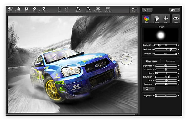 It offers users a variety of monochrome layers, an adjustable painting brush, and a variety of editing tools like contrast, hue, saturation, exposure, brightness, blur, and vignette, along with support for RAW files up to 32 megapixels in size, and the ability to share your creations directly to Facebook, Twitter, Tumblr, or Flickr. As an added bonus, you’ll get a free 8×10 print from CanvasPop for trying out the new Print on Canvas feature — which is worth the cost of admission all by itself.