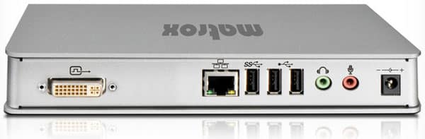 DS1 has a pretty simple setup: on the front is a single Thunderbolt port—sadly, you have to provide your own cable to connect to your Mac. Turn it around to find DVI, Gigabit Ethernet, USB 3.0, USB 2.0, audio-out, and audio-in ports, as well as a power connector.