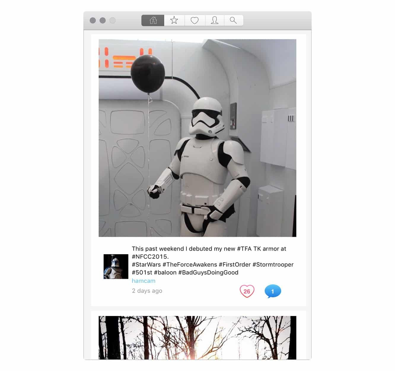 Designed exclusively for OS X Yosemite, this app provides a stream-like browsing experience similar to Twitter clients we’ve seen, with tabs at the top that let you access your own feed, Instagram’s most popular posts, posts you’ve liked, profiles, and a search for users and tags.