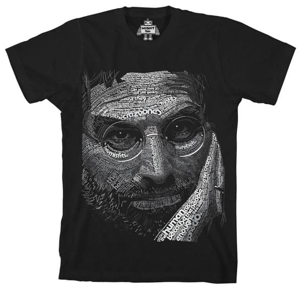At this point, serious Mac fans likely have Apple’s famous “Here’s to the Crazy Ones” commercial memorized. Since Steve Jobs’ passing in October, not only has the version he narrated been watched 1.9 million times on YouTube, but the text has been reprinted over and over in a number of different mediums. One of our favorites comes from Might Tees’ His Steveness T-Shirt ($29).