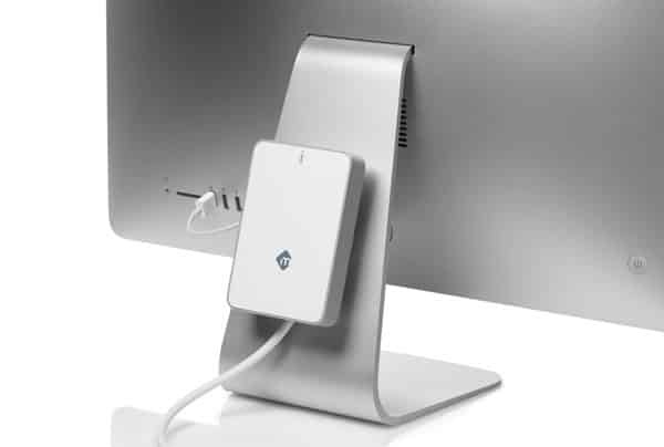 mBack’s key attribute is its ability to mount on the back of late-2009 and newer iMacs and Apple displays, fitting into the round hole found on the back of their legs. It comes in 500GB, 1TB, and 2TB capacities, with all three featuring USB 3.0 speed and power.