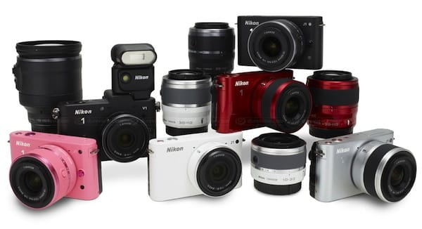 J1 has an internal flash and will be available in an array of five colors, while V1’s flash is external, and the body can be had in white or black. Both cameras will be sold as kits, including 10-30mm (27-81mm equivalent) lenses at their respective price points.