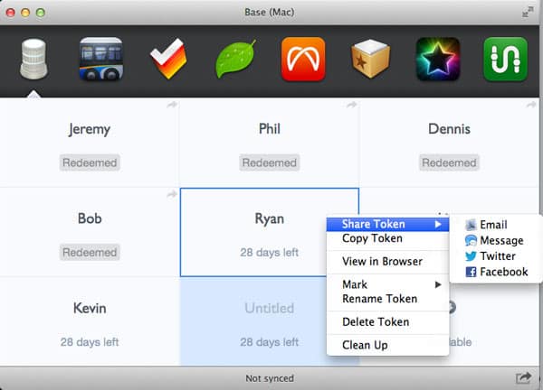 To distribute codes, simply click on one of the “Available” boxes, name it if you’d like, and then right click to choose how you’d like to share it. Tokens even tells you when the code has been redeemed.