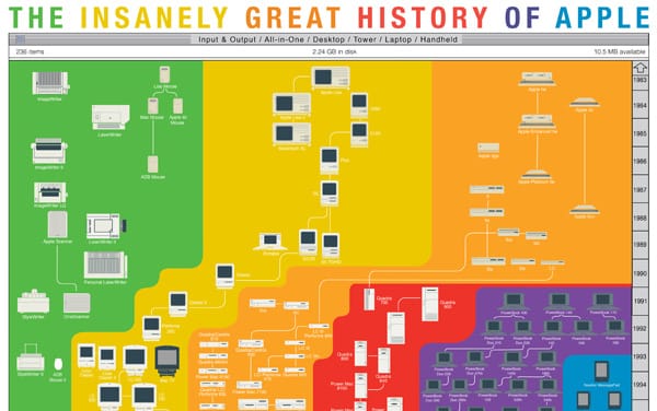 Take a close look and you’ll notice the colors splitting them up definitely aren’t arbitrary. The chart starts in 1983, so it does have some omissions, including the Apple I and Apple II.