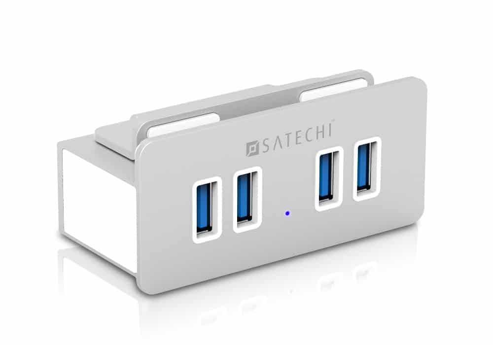 For those who want to keep it simple, Satechi’s new Aluminum Clamp Hub ($28) offers a nice aesthetic solution at a reasonable price. Easily attached to any recent model iMac, this hub provides four front-facing USB 3.0 ports without taking up any disk space or increasing the cable clutter.