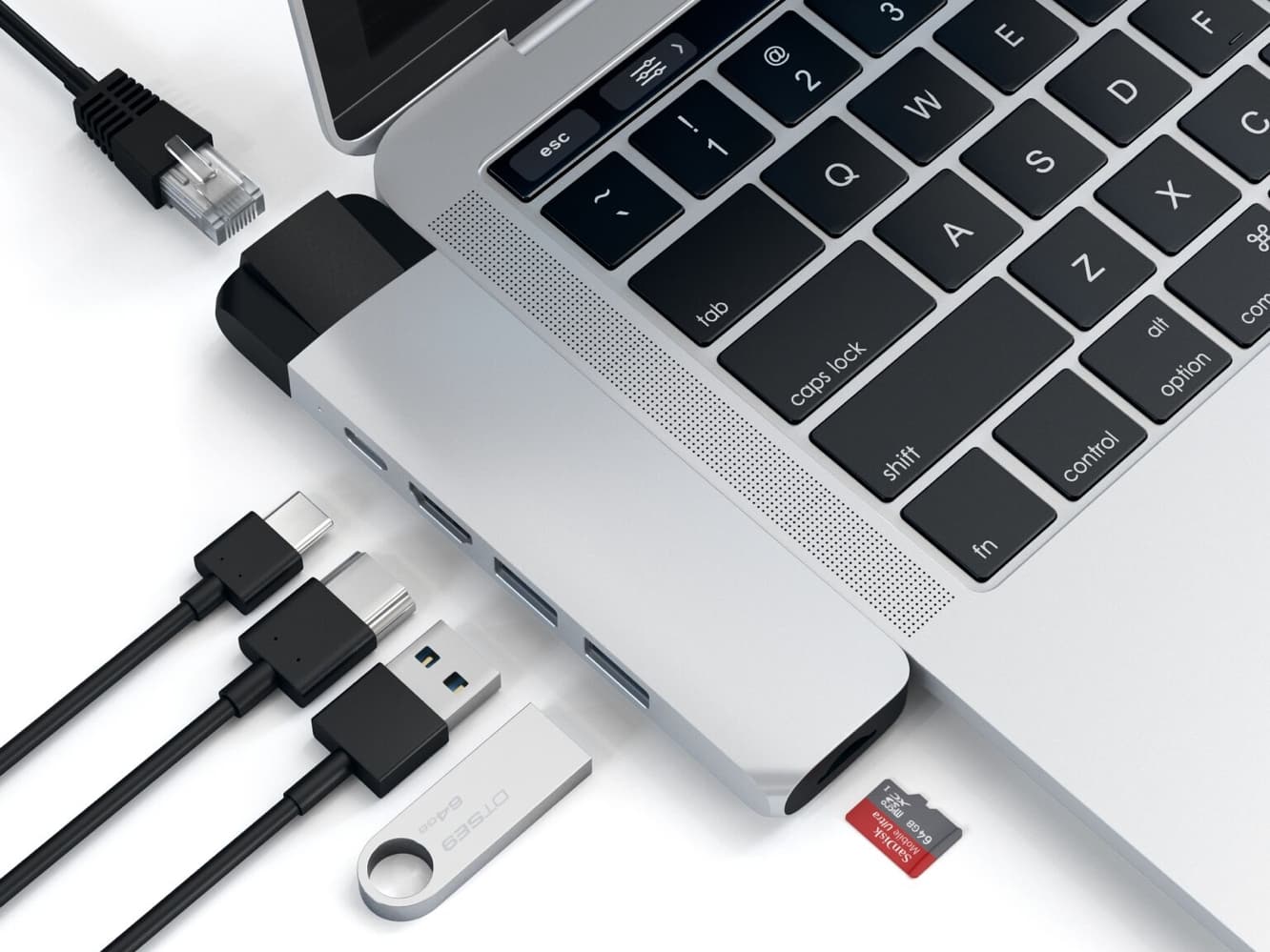 In addition, the new hub still provides a 4K HDMI video port, a USB-C port that supports 87-watt USB Power Delivery, two standard USB 3.0 ports, and a micro SD card slot, and of course sports the same elegant aluminium-finished look that Satechi is known for, with color options that fit right in with whichever MacBook Pro you happen to be using.