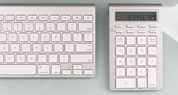 A little bit longer than the keyboard, the keypad is otherwise made to match with an aluminum finish, white keys, and a raised backend. Just connect the pad via Bluetooth, and it’s ready for calculations and data entry.