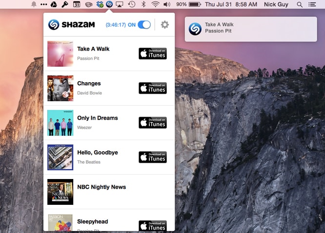 This works for not only songs, but TV episodes as well. Clicking on the app’s icon will display a list of your recently identified items, and from there you can either buy the tracks on iTunes, or click through for more information such as lyrics and associated tracks.