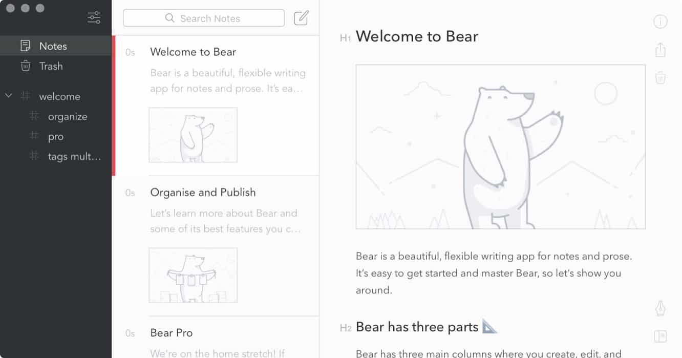 If you do a lot of writing or note-taking on your Mac and have been looking for a new way to handle it all, you may be interested in taking a look at Shiny Frog’s new Bear (free / $1.50/month). It’s a writing app that supports a wealth of advanced features while maintaining a very clean and accessible user interface.