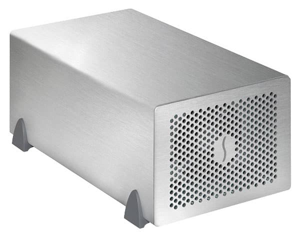 Along with the chassis, you’ll get a coupon for “one free exchange for an easy-to-install upgrade to 20Gbps Thunderbolt 2”—free after shipping and handling, of course. Echo Express SE II can hold up to two half-length, full-height, single-width PCIe cards, and has two Thunderbolt ports, allowing you to daisy chain accessories.