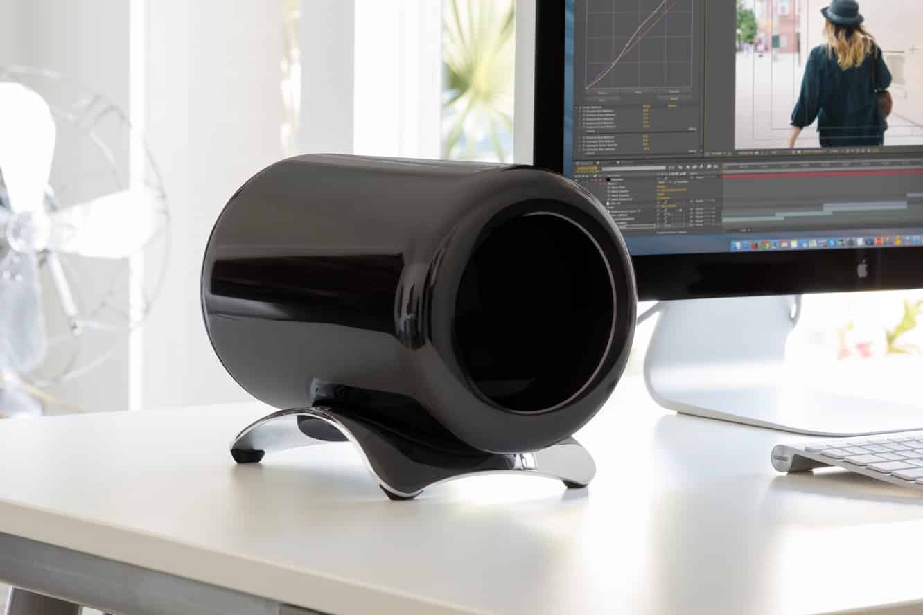 A BookArc for the Mac Pro ($60)? Why not? Twelve South certainly seems to have thought so, adapting its elegantly simple MacBook stand for Apple’s most powerhouse desktop Mac, providing not only a way to hold your Mac Pro, but a way to make it shine like the high-tech work of art that it is. Made from an interior of solid steel with polished chrome on the outside and soft silicone padding on the inset, this new BookArc holds your Mac Pro on its side – a perfectly acceptable position as far as Apple is concerned – where it can operate horizontally, reducing the Mac Pro’s profile and giving you more flexibility to place it where you want, with a resulting look that ends up reminiscent of a futuristic jet engine.