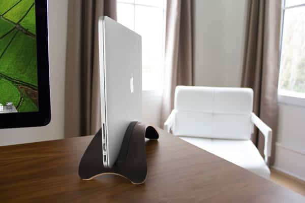 BookArc möd comes in birch, walnut, and espresso finishes, and thanks to included rubber inserts, works with the MacBook, MacBook Air, MacBook Pro, and MacBook Pro with Retina display. The stand can hold your Mac when not in use, or it can also be used along with an external display and the computer in closed clamshell mode — a beautiful solution for those who use any sort of monitor hooked up to a laptop at the desk.