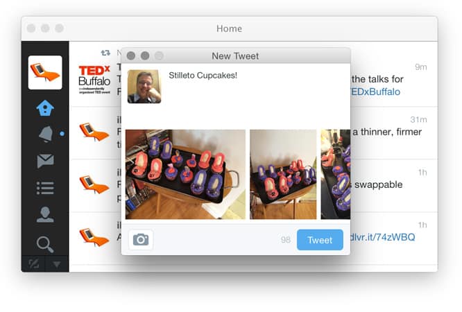 Although Twitter is quick to roll out new features to its mobile apps, the Mac version seems to get updated with much less frequency, so it’s somewhat noteworthy when an update appears on the Mac App Store. Twitter 3.1 adds two new features that came to the iOS app almost a year ago: the ability to attach photos in Direct Messages and include up to four photos in a single tweet.