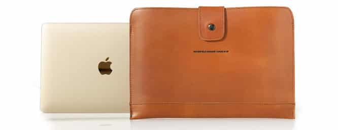 WaterField Designs has released the leather Atelier Folio ($109) to compliment the newly updated 12” MacBook. The simple cognac-colored sleeve is created from a single cow hide, lined with red Ultrasuede scratch-free microfiber and has an invisible magnet inside the leather fastener to hold the case shut.