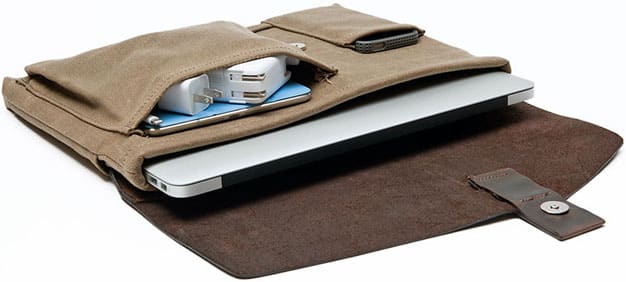 In addition to a padded pocket for the Mac, there’s one sized specifically for an iPhone, and another that can hold accessories and even an iPad mini.